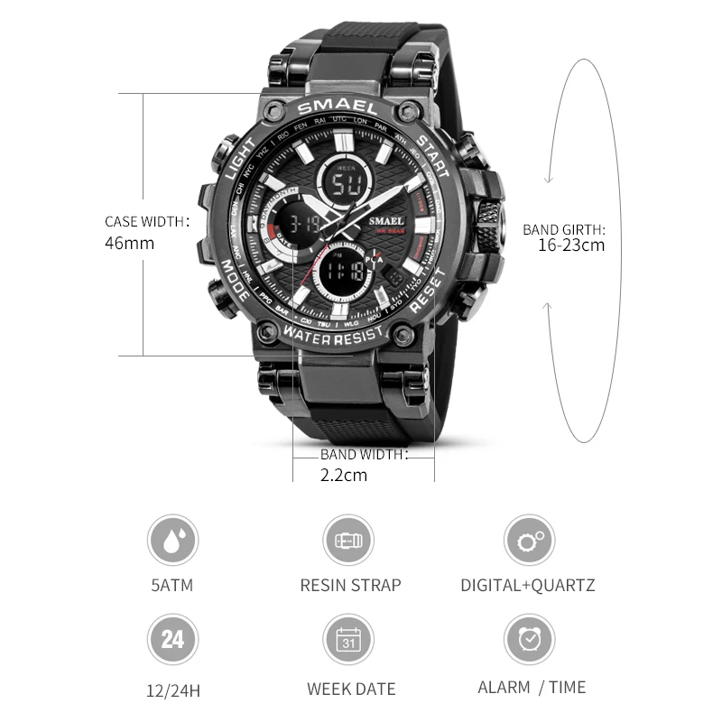 Product Name: SMEAL mężczyźni oglądać cyfrowy wodoodporny zegar mężczyźni zegarki wojskowe LED męska Wrist Watch 1803 Sport zegarek Relogio Masculino