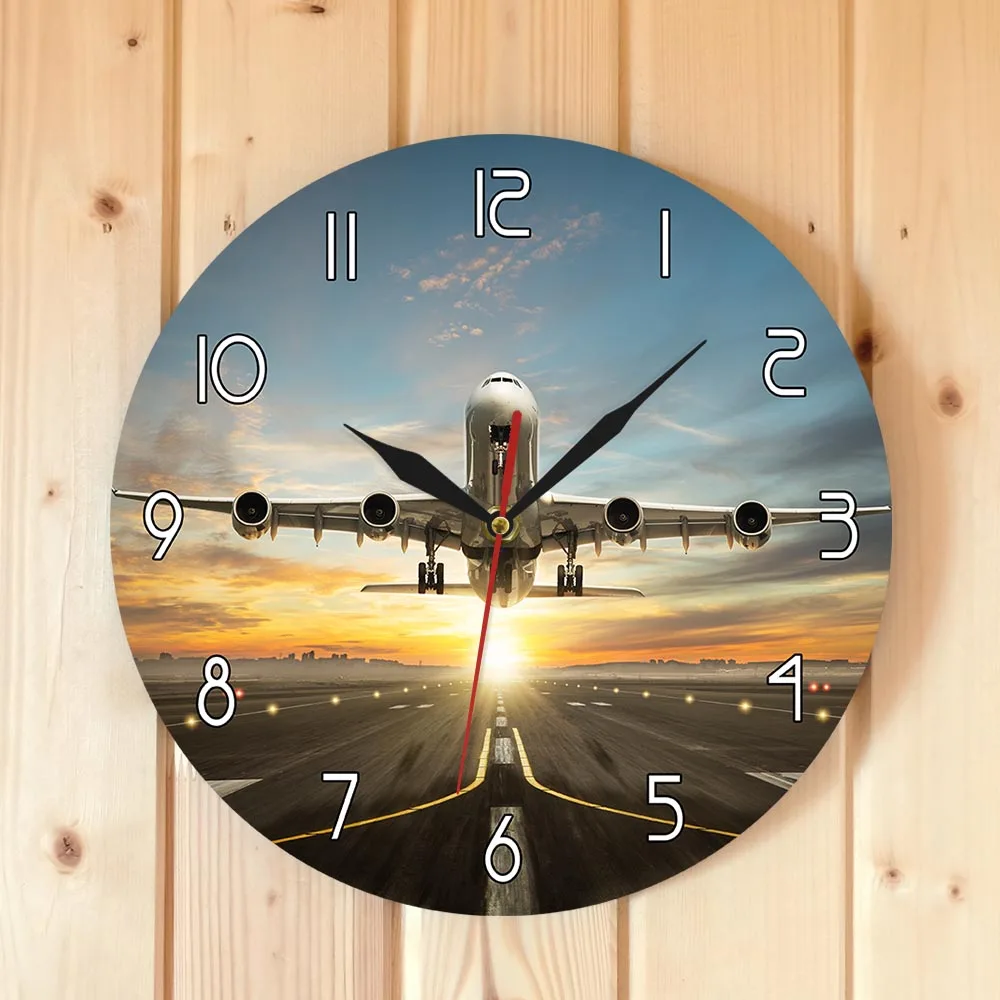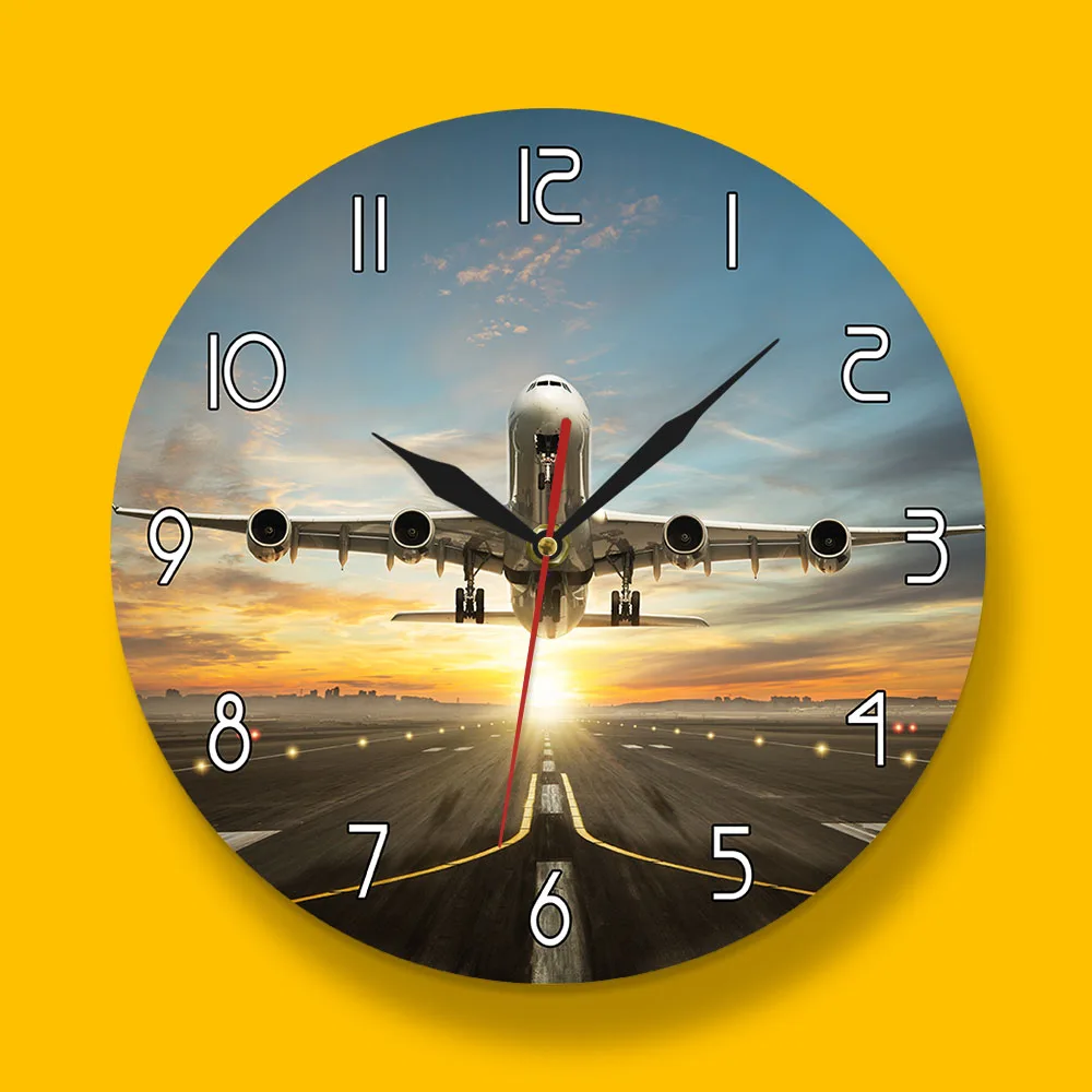 Product Name: Ogromne dwa piętra komercyjny zegar ścienny Jetliner komercyjny samolot biorąc pas startowy w dramatycznym zachodzie słońca nowoczesne dekoracje do domu