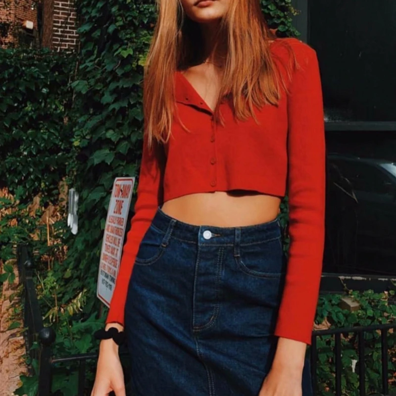 Special Offer Jesień 2019 kawaii przycięte swetry rozpinane kobiety dzianiny sweter w stylu crop top różowy czarny sexy swetry słodkie sweter z dzianiny vintage koreański Discount 35% Today!