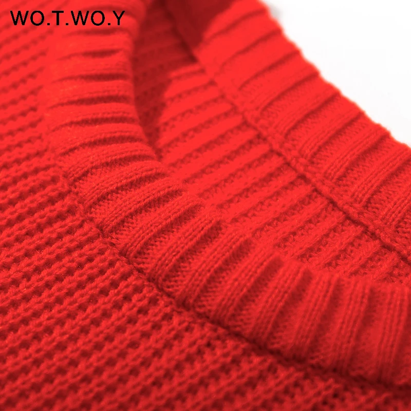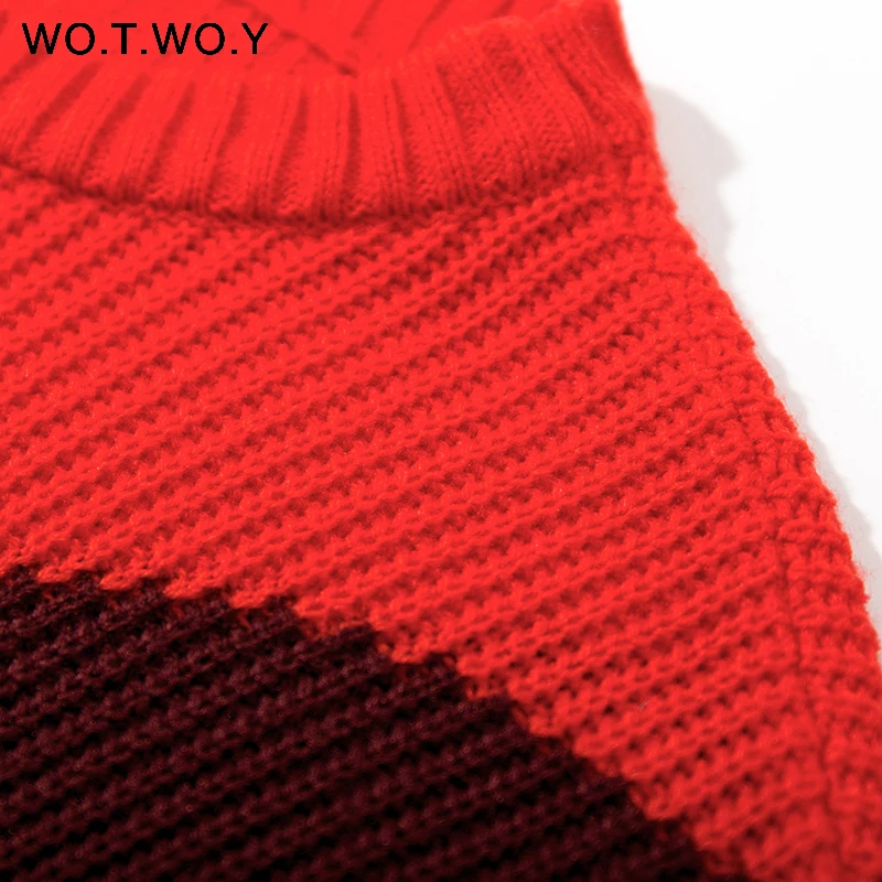 Product Name: WOTWOY nowa jesienna zima kontrastowe kolory Patchwork damski sweter swetry na co dzień kobiety O Neck dzianinowy z golfem Pull Femme