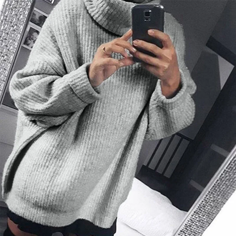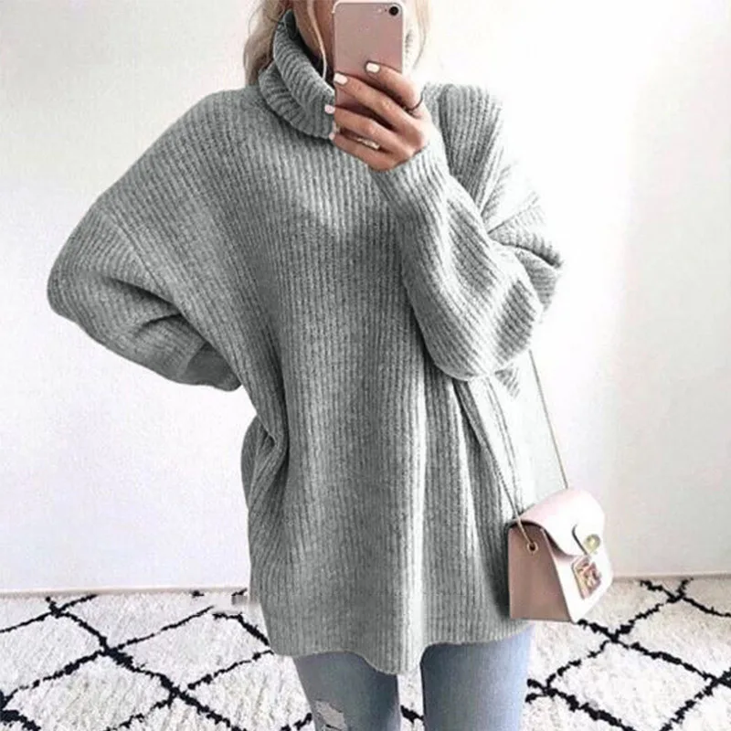 Special Offer Oversize z dzianiny z golfem kobiet sweter swetry długi rękaw w kształcie skrzydła nietoperza zima solidna kobiety swetry 2020 luźny, w stylu basic Jumper Discount 48% Today!