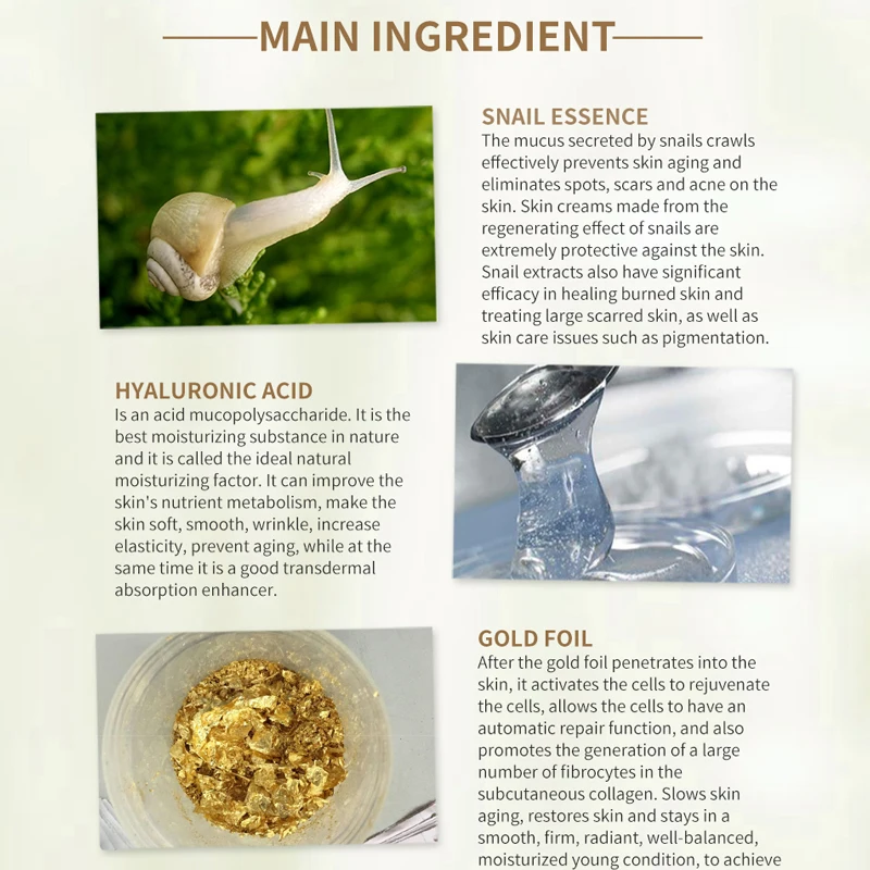 Special Offer 24k złota esencja ślimak krem Anti aging przeciwzmarszczkowy krem do twarzy do naprawy ujędrnienie skóry kwas hialuronowy nawilżający krem wybielający Discount 30% Today!