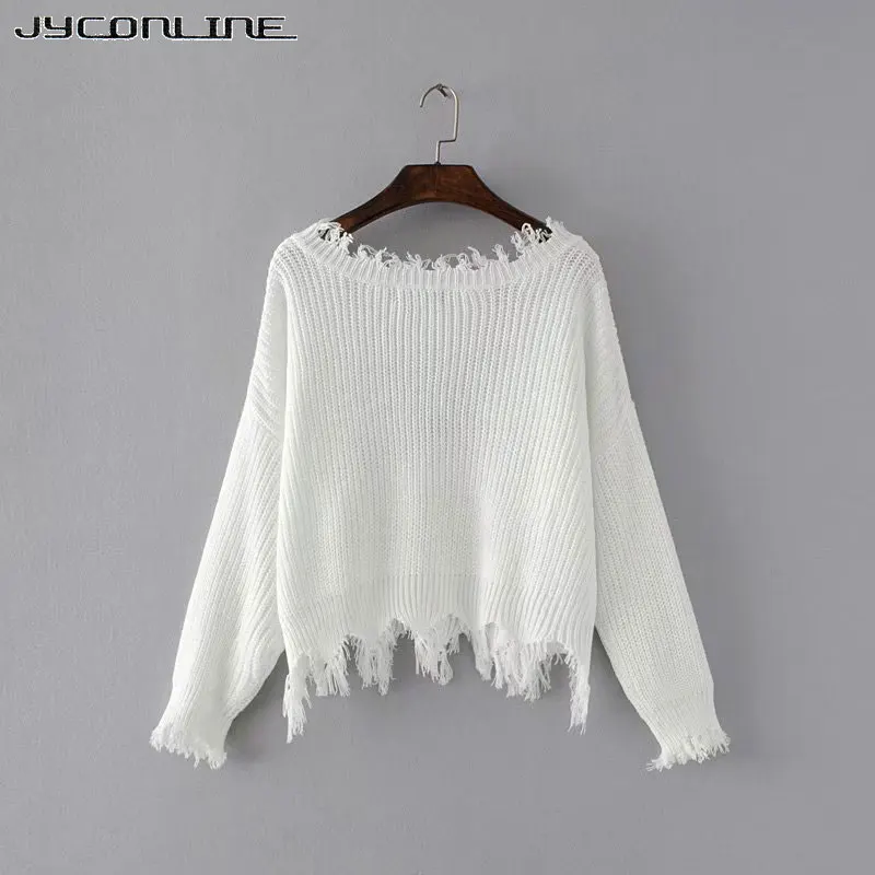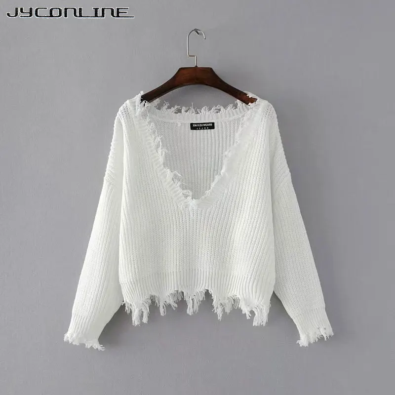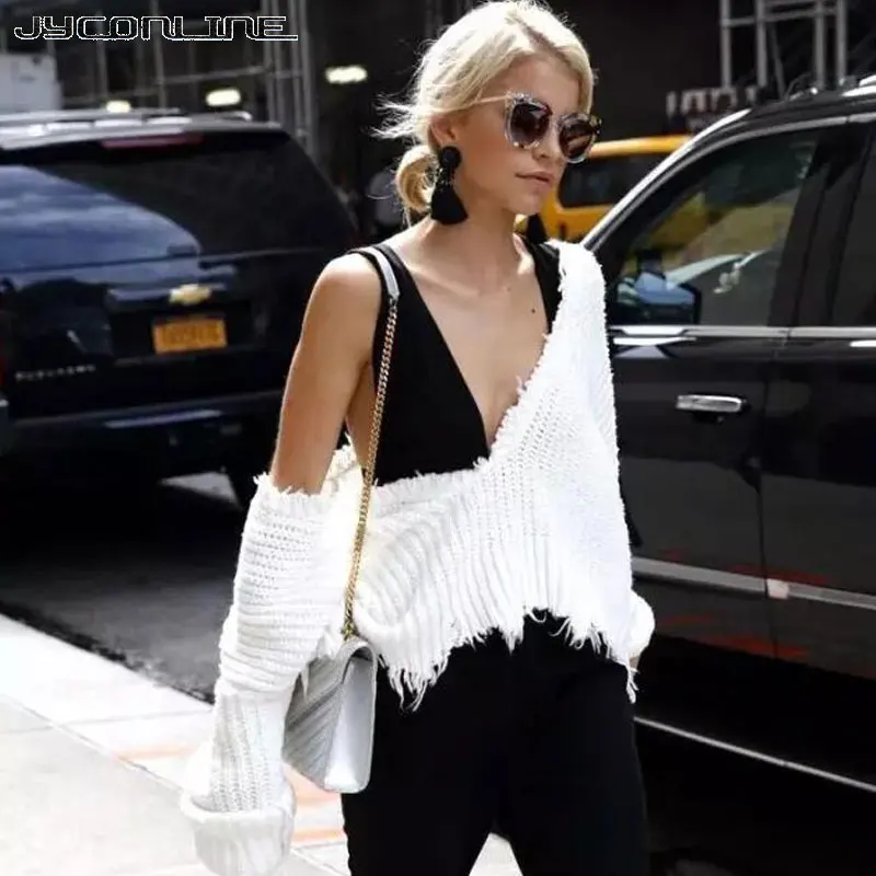Special Offer JYConline seksowna dzianina sweter damski sweter czarny biały dekolt w serek zgrywanie sweter sweter Pull Femme nadwymiarowy sweter top z dzianiny Discount 33% Today!