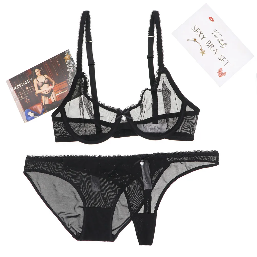 Special Offer Kobiety seksowny przejrzysty biustonosz zestaw bielizna damska i stringi i zestaw fig 3 sztuk partia Discount 48% Today!