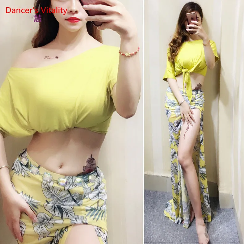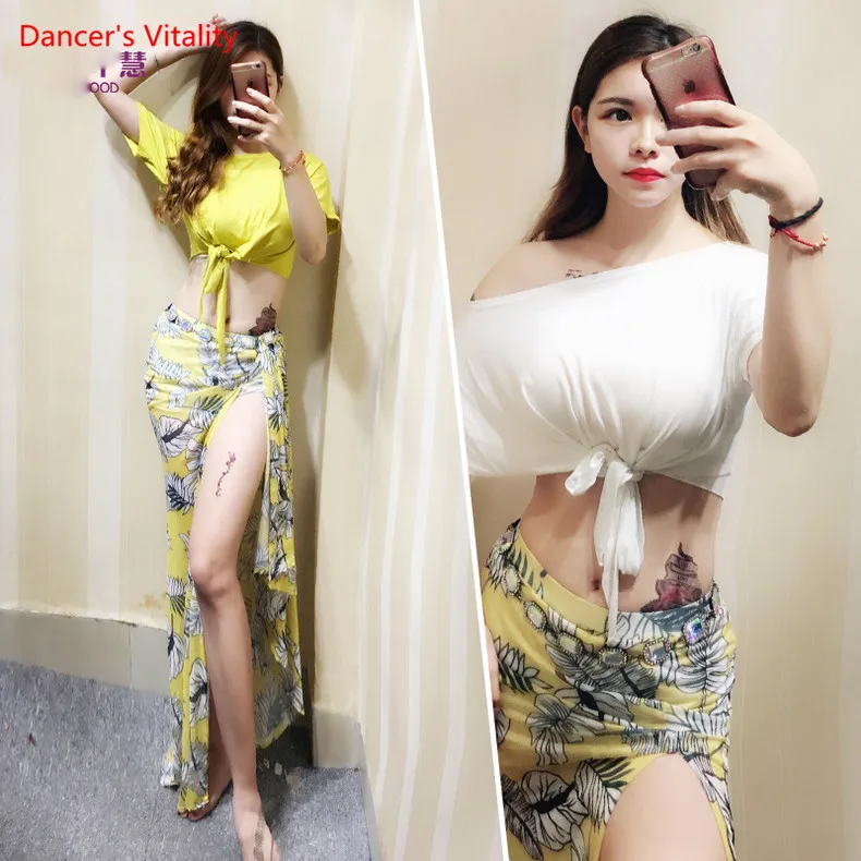 Special Offer Dla kobiet taniec brzucha Belly Dance odzież siatki z krótkim rękawem Top + spódnica 2 szt. Zestaw do tańca brzucha dla dziewczynek brzucha kostium taneczny Discount 10% Today!