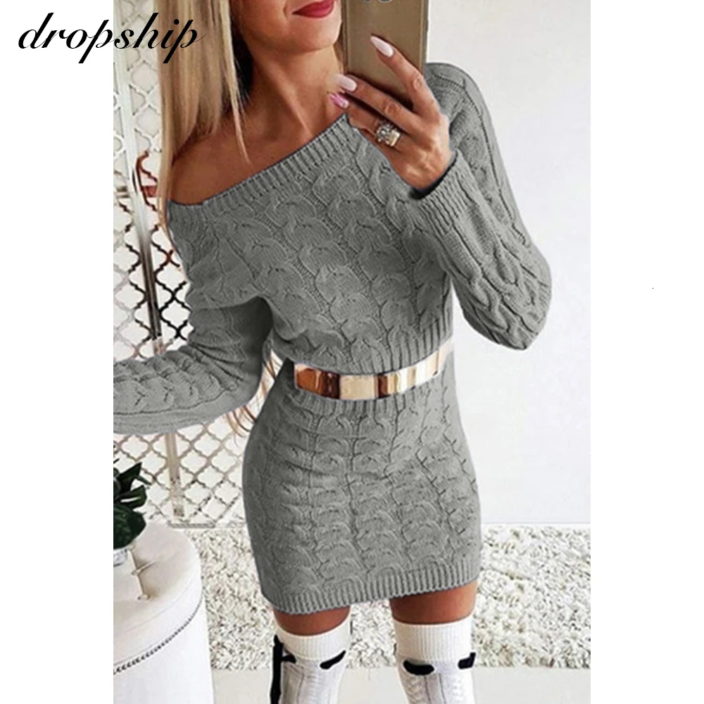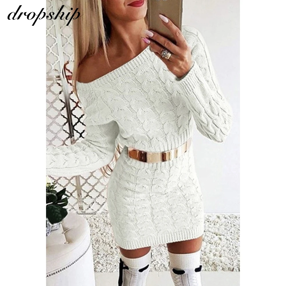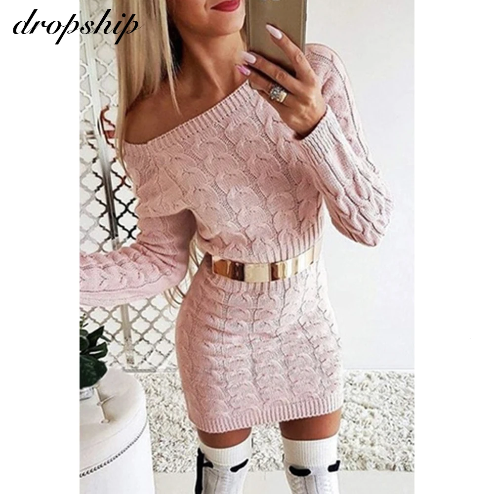 Product Name: Zimowy biały sweter sukienka 2019 dzianinowe swetry damskie jesień damska z okrągłym dekoltem różowy seksowny solidny damski sweter zimowy znosić