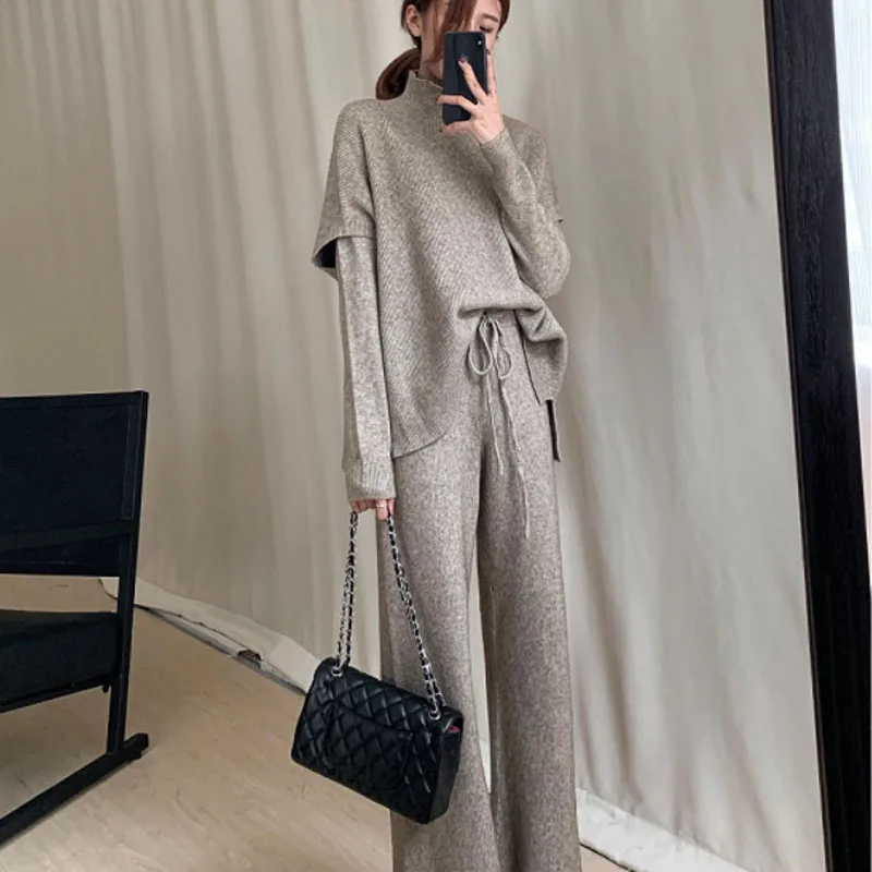 Special Offer Zestaw swetrów kobieta zima sweter na drutach sweter + kamizelka + spodnie 3 sztuka zestaw damski garnitur oficjalny z golfem zestaw do szydełkowania nowy sweter dla kobiet 2019 Discount 39% Today!