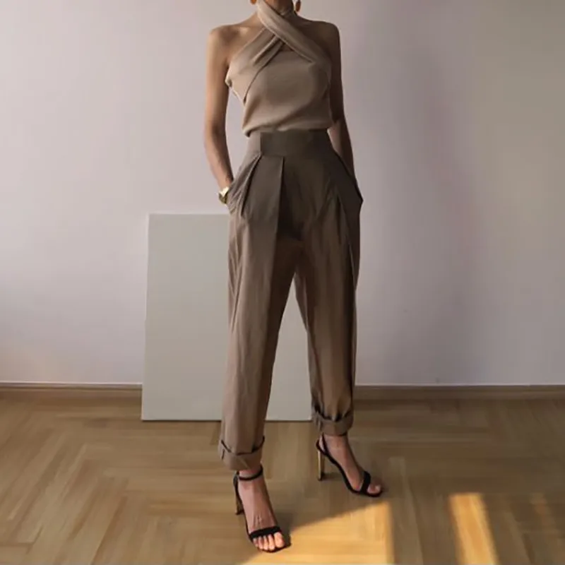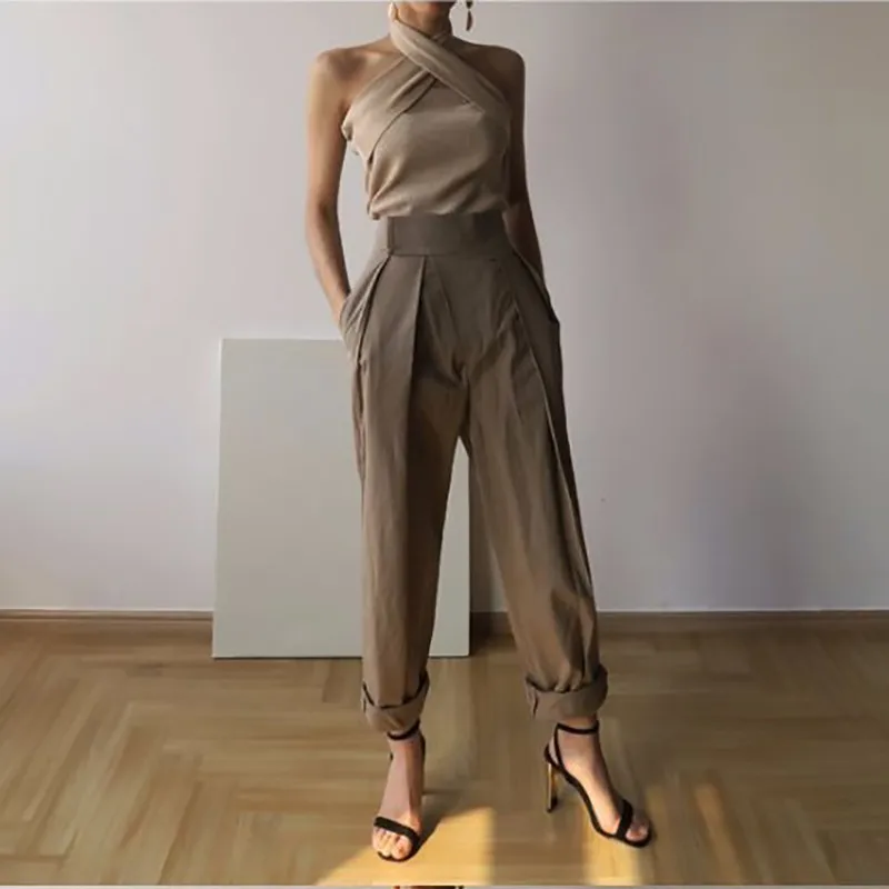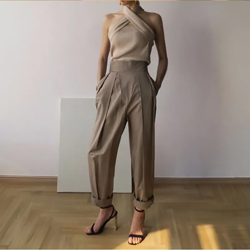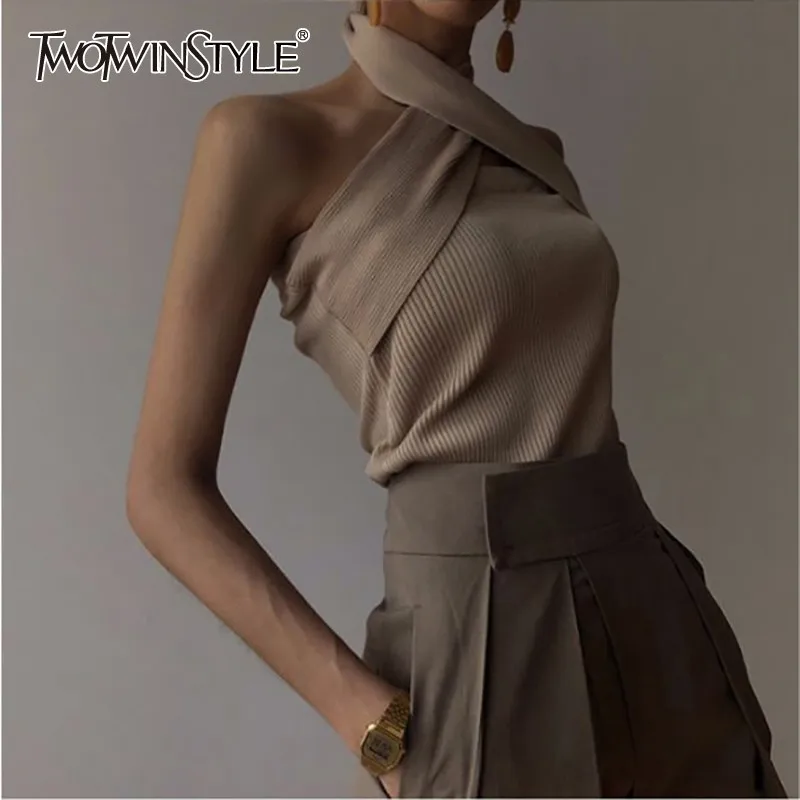 Special Offer TWOTWINSTYLE stałe bez rękawów Sexy kobiety sweter Halter Off ramię slim, dziany topy kobiet moda lato 2019 nowa fala Discount 49% Today!