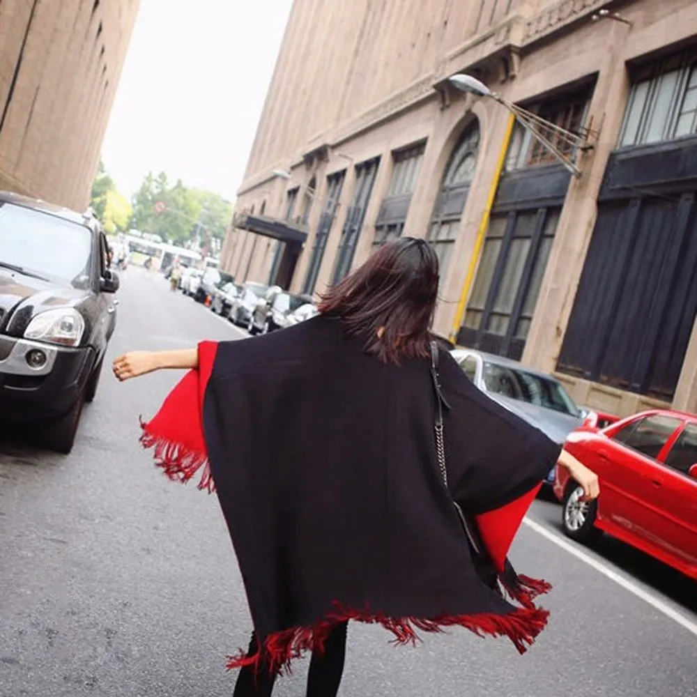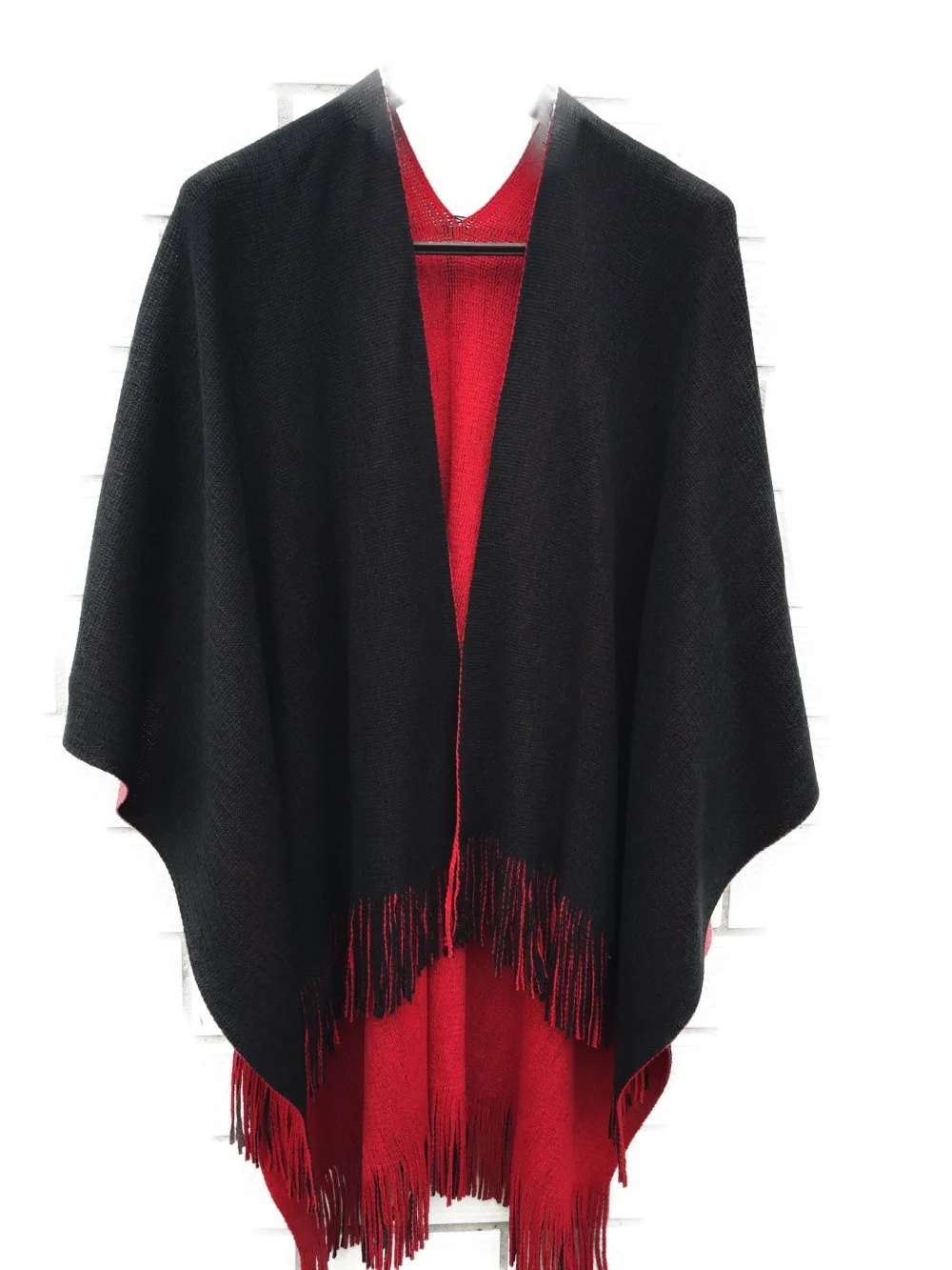 Product Name: Oversize Deversible Women zimowa dzianina kaszmirowa Poncho peleryny szal swetry rozpinane sweter Q6 32E