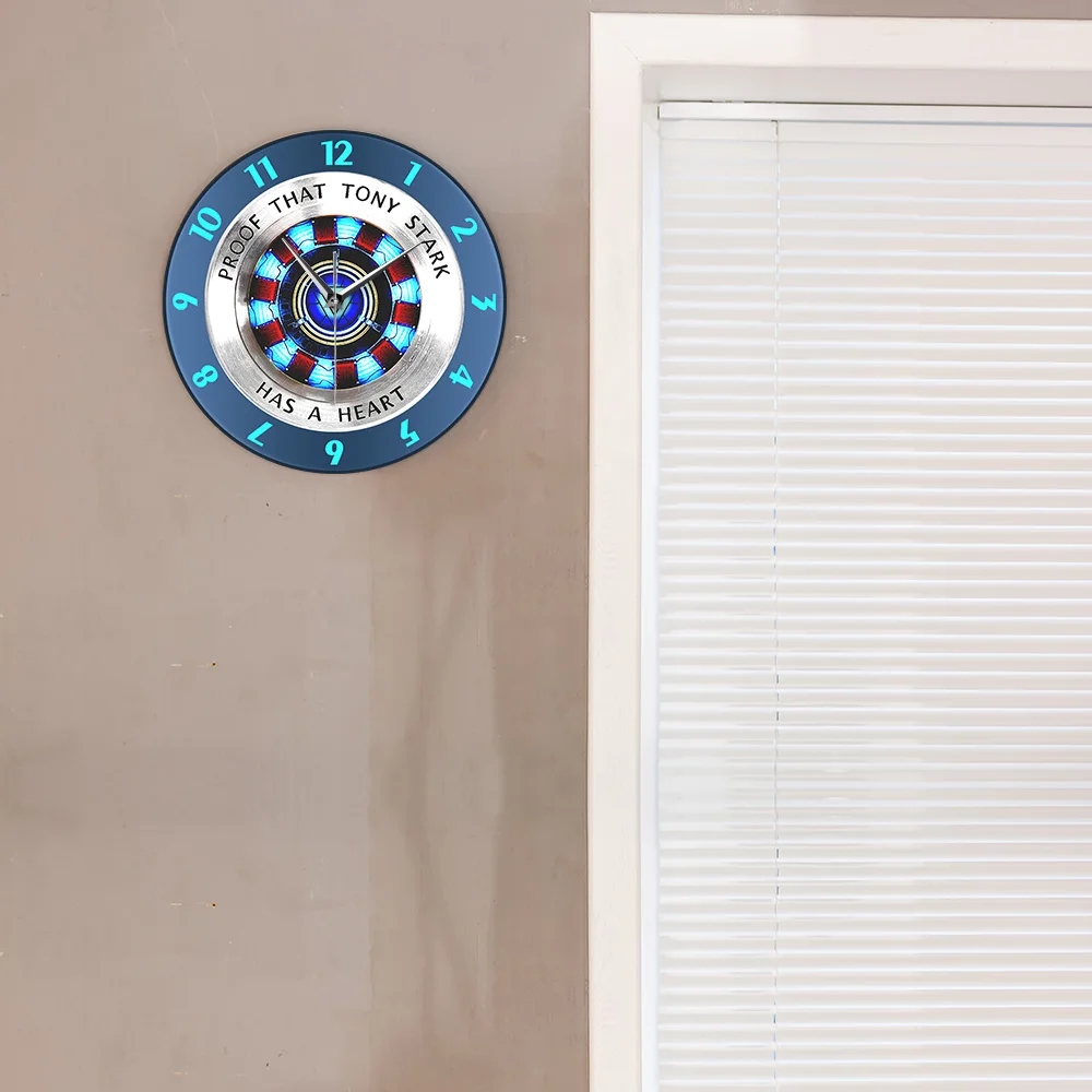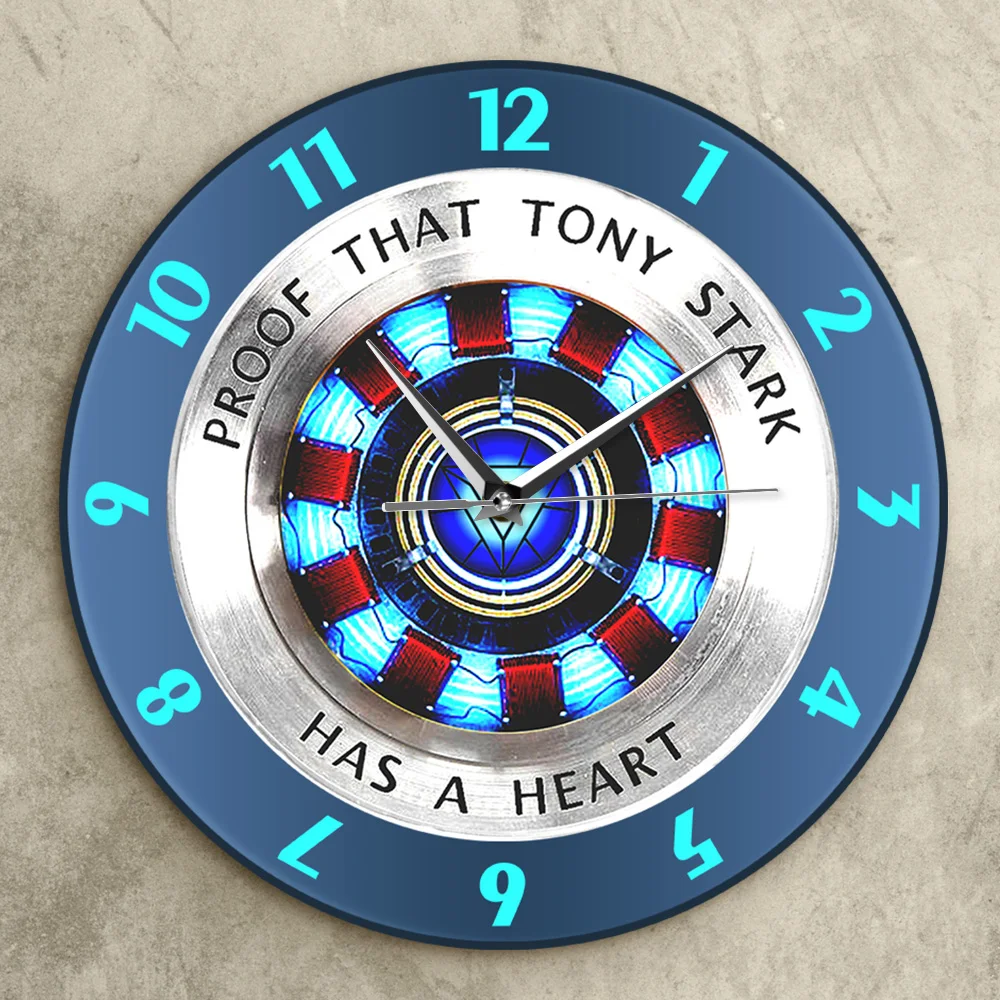 Product Name: Dowód, że Tony Stark ma serce Arc reaktor zegar ścienny Superhero nowoczesne wiszące zegar ścienny film Timepiece Home Decor Wall Art