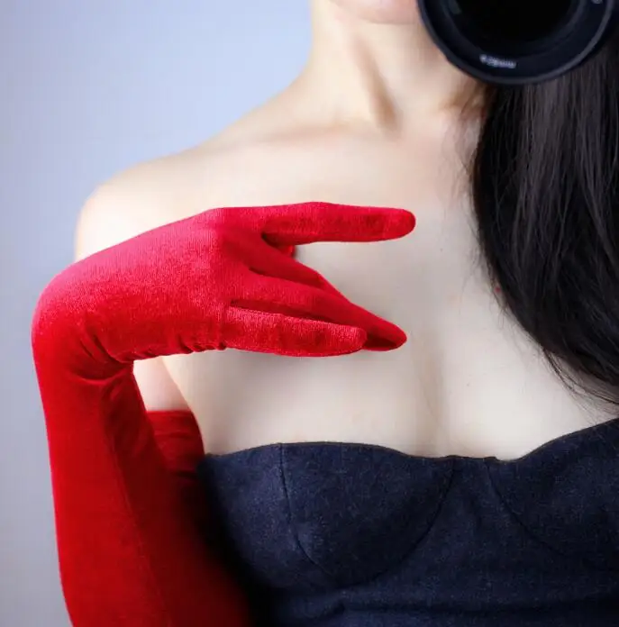 Special Offer Moda damska seksowna szczupła aksamitna rękawica do ekranów dotykowych damski klub wydajność formalna strona elastyczne długie rękawiczki 60cm R591 Discount 10% Today!