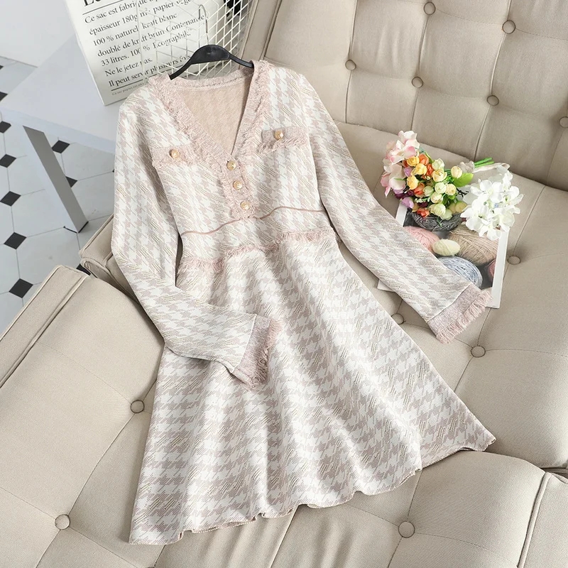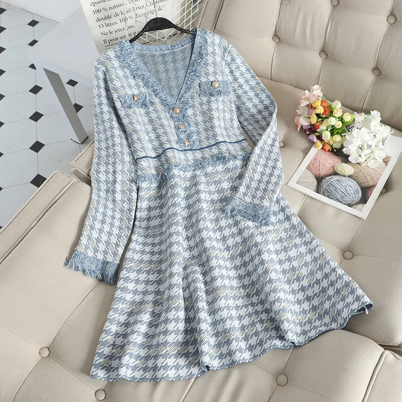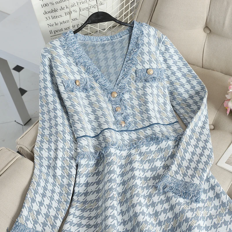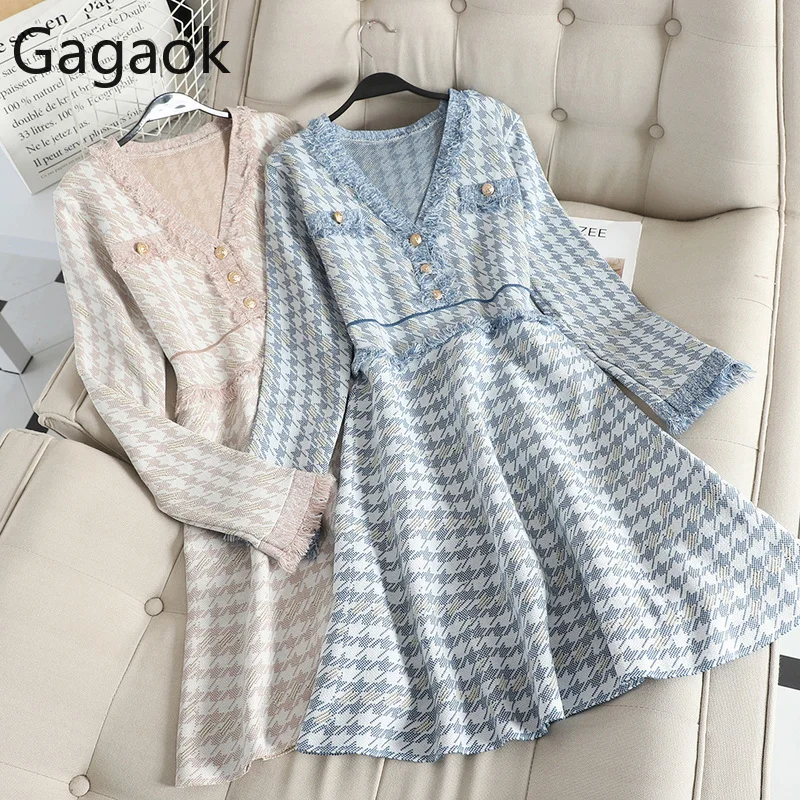 Product Name: Gagaok sweter damski nowy dzianinowy dekolt w szpic pełny guzik imperium do kolan rozciągliwe dopasowanie jesienne sukienki damskie