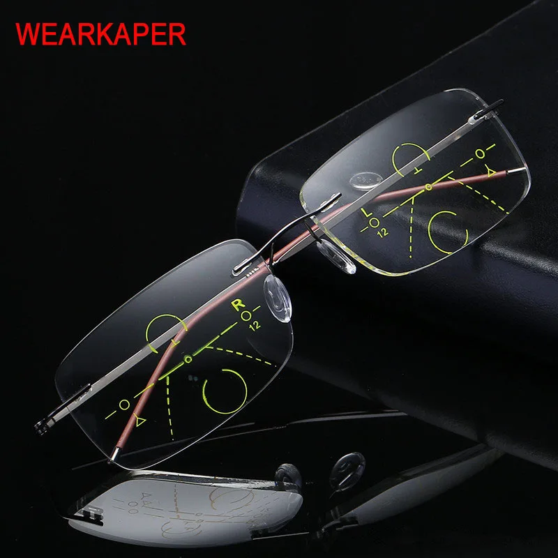 Special Offer 2020 nowy Titanium mężczyźni kobiety progresywne okulary do czytania z etui na okulary metalowe bez oprawek dwuogniskowe okulary wieloogniskowe Discount 21% Today!