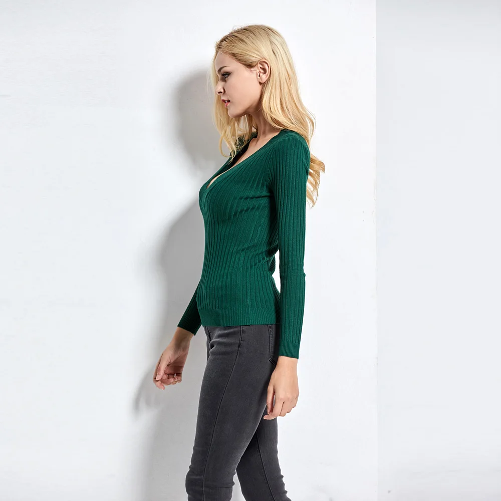 Special Offer 2019 nowa wiosna głębokie V las zielony swetry kobieta Stretch sweter z dzianiny kobiet elastyczna wszystko mecz rozmiar Jumper podstawowe topy C3554 Discount 26% Today!