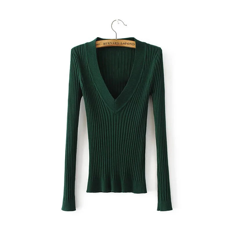 Product Name: 2019 nowa wiosna głębokie V las zielony swetry kobieta Stretch sweter z dzianiny kobiet elastyczna wszystko mecz rozmiar Jumper podstawowe topy C3554
