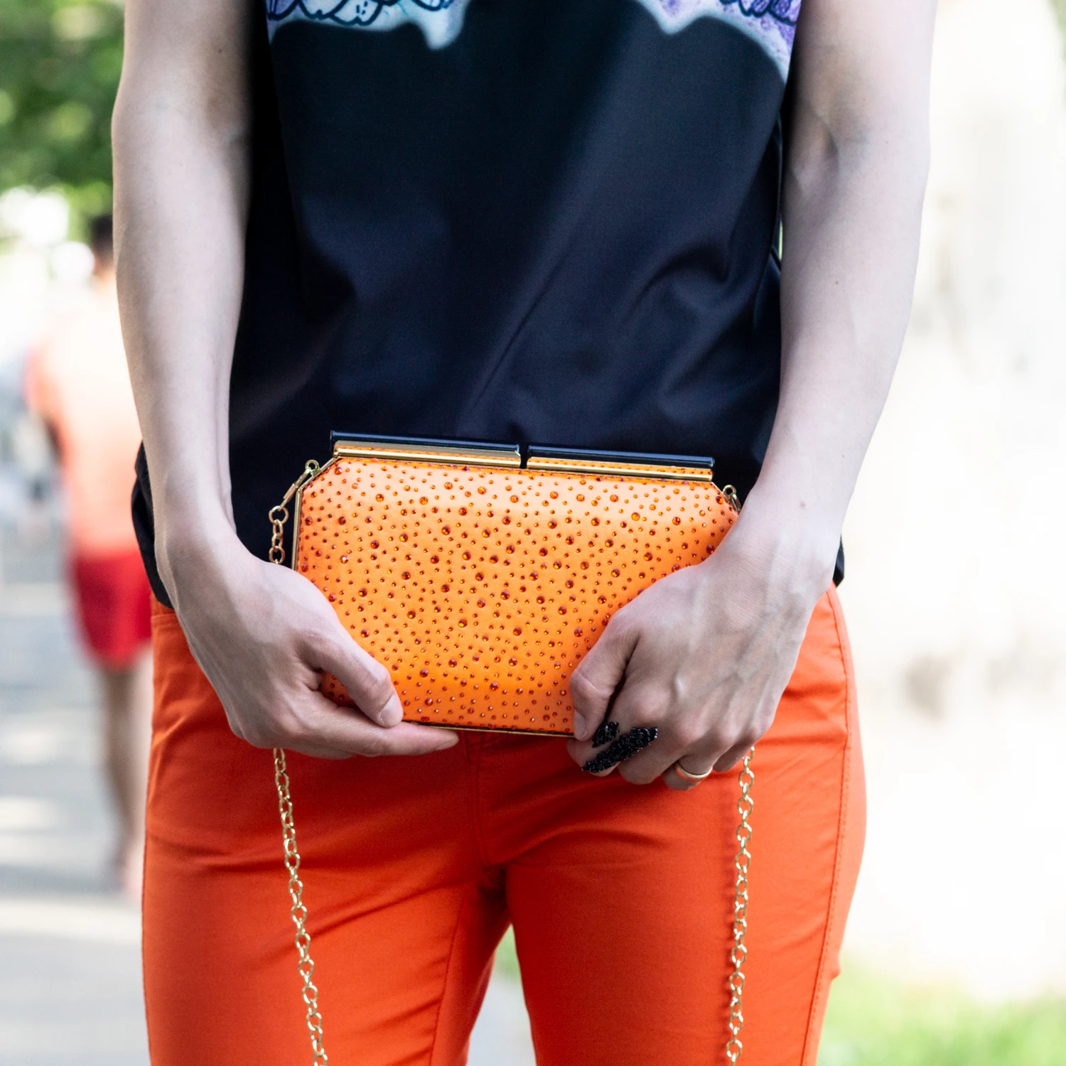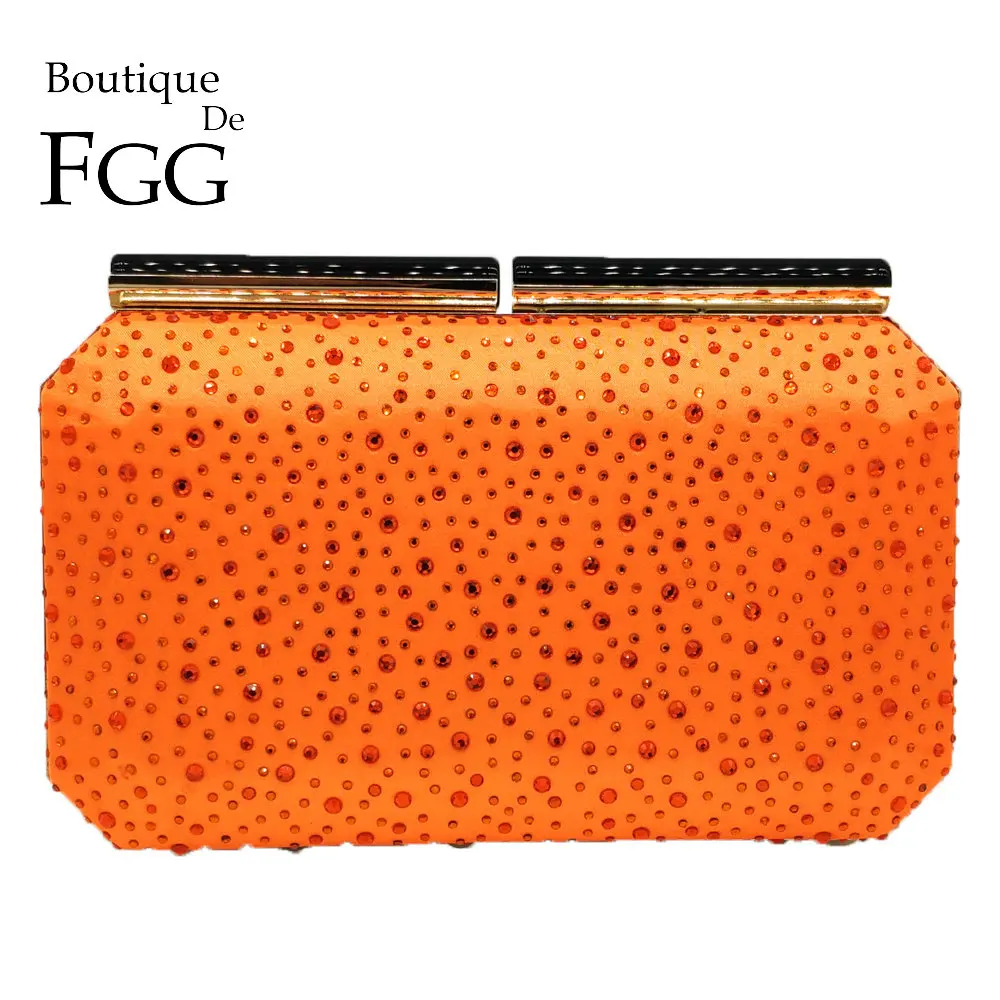Product Name: Boutique De FGG pomarańczowy kryształ kopertówka wieczorowa damska torba metalowa rama akrylowa zapięcie wesele bankiet łańcuch torebka na ramię