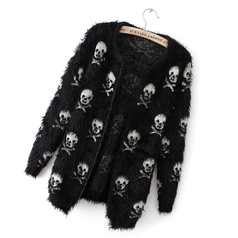 Special Offer 2019 krótki kobiety jesień sweter moherowy czaszki drukowanie kobiet znosić swetry rozpinane krótki, z dzianiny damskie swetry rozpinane Discount 24% Today!