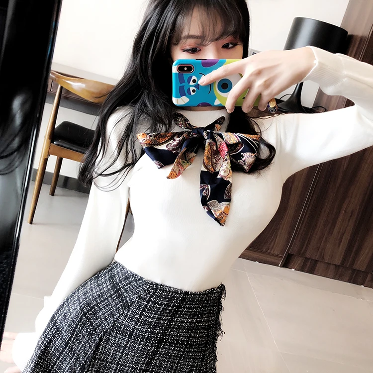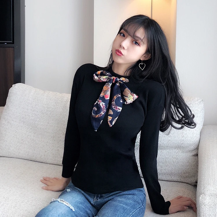 Product Name: Sweter z dzianiny damskie zimowe podstawowe bluzki modna kokardka Tie Lace Up elastyczność eleganckie damskie swetry swetry Solid Slim swetry