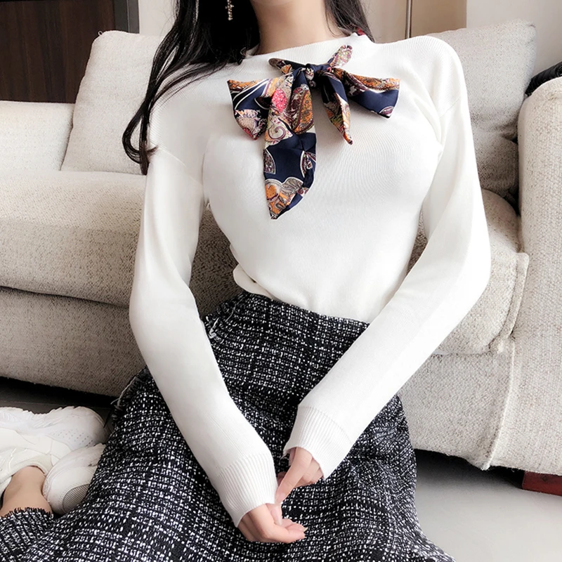Special Offer Sweter z dzianiny damskie zimowe podstawowe bluzki modna kokardka Tie Lace Up elastyczność eleganckie damskie swetry swetry Solid Slim swetry Discount 42% Today!