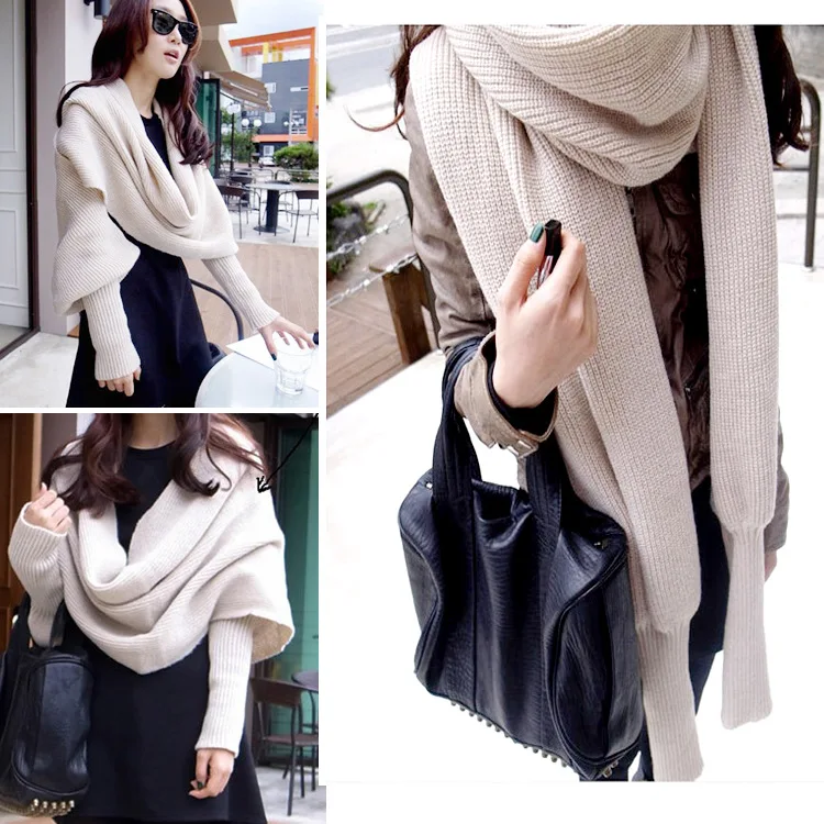 Product Name: Moda kobieta szale kobiety szaliki stałe rękawy Lic szalik zimowe ciepłe Knitting długie miękkie mężczyźni okłady szaliki nowość kobiety Cape